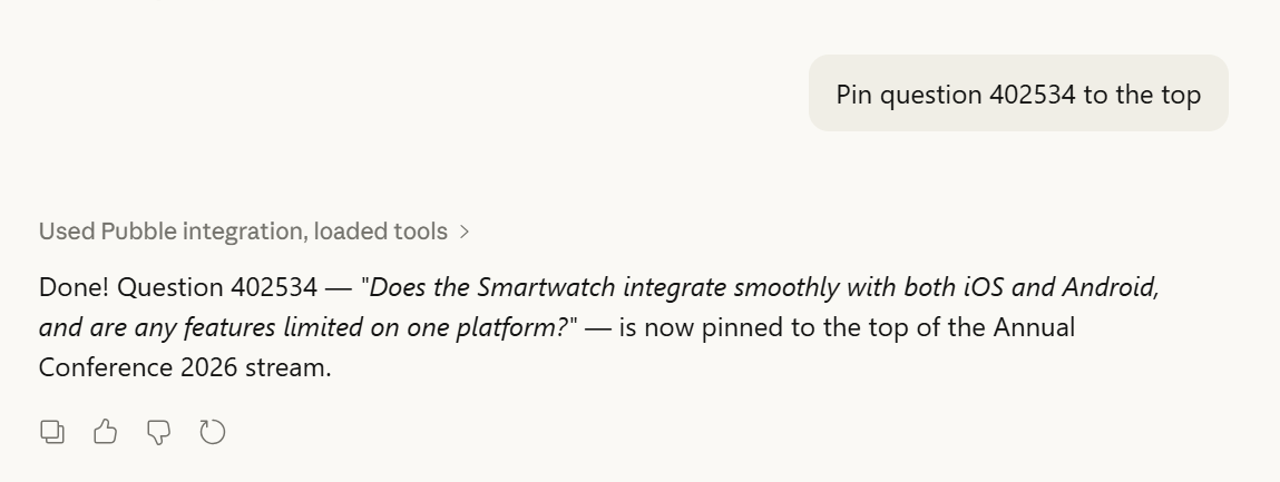 Once connected, you can ask your AI assistant to perform the following actions on your Pubble community:
